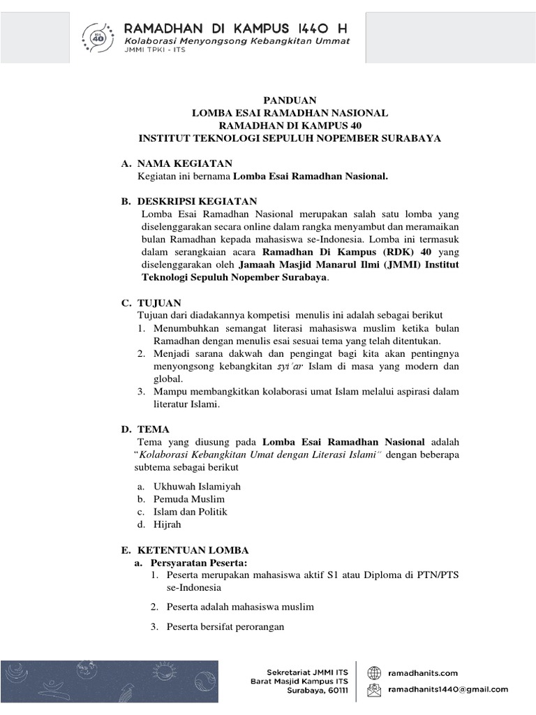 Panduan Lomba Esai Ramadhan Nasional Rdk 40 Its