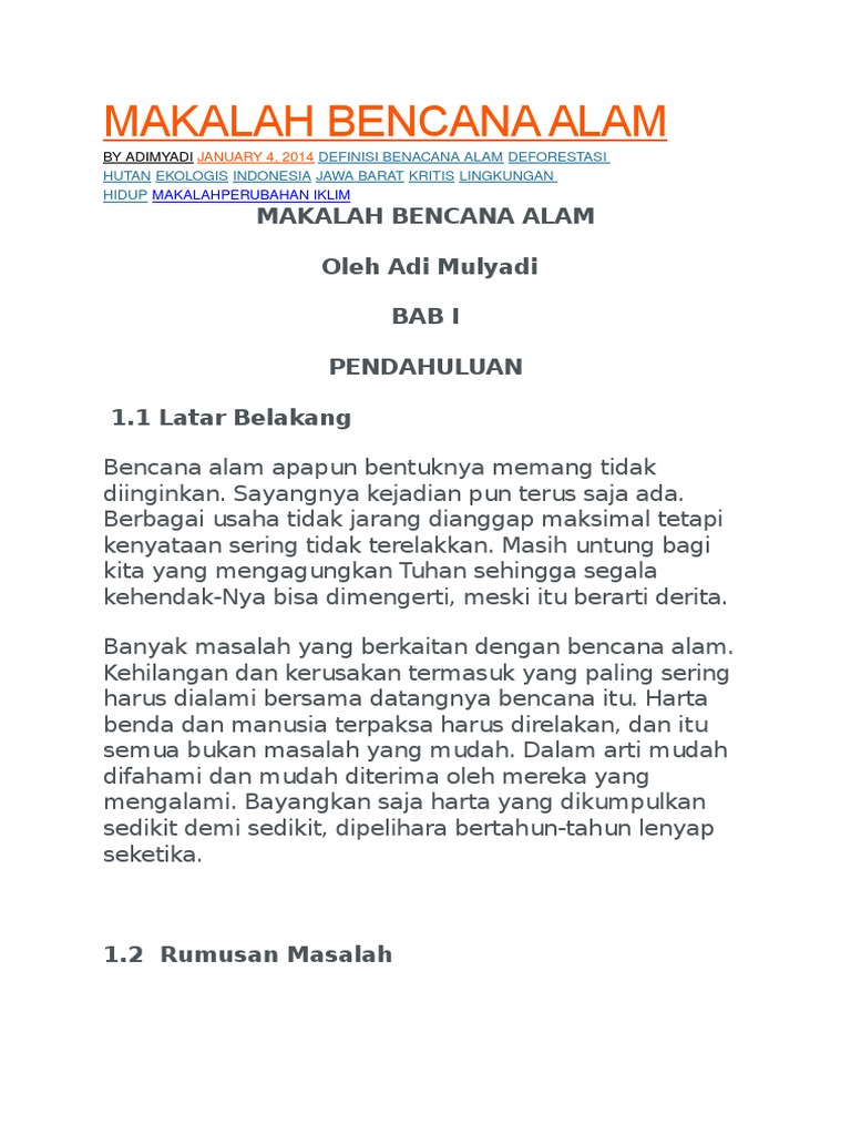 Makalah Bencana Alam Doc Pdf Download Contoh Makalah Lengkap