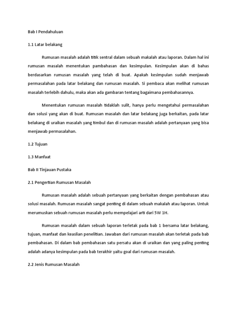 Pada bagian pembahasan atau isi Anda harus memaparkan secara lengkap dan jelas tentang jawaban dari apa yang ada di rumusan masalah. Contoh rumusan masalah Laporan Praktik Kerja Lapang Rumusan masalah prakerin SMK. Contoh tujuan pembahasan dalam makalah.