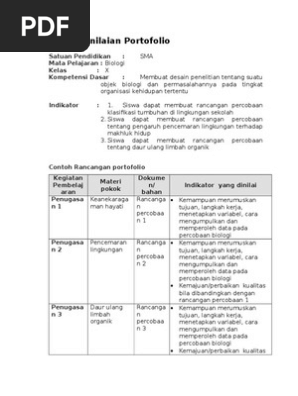 Contoh Penilaian Portofolio Bio Sma