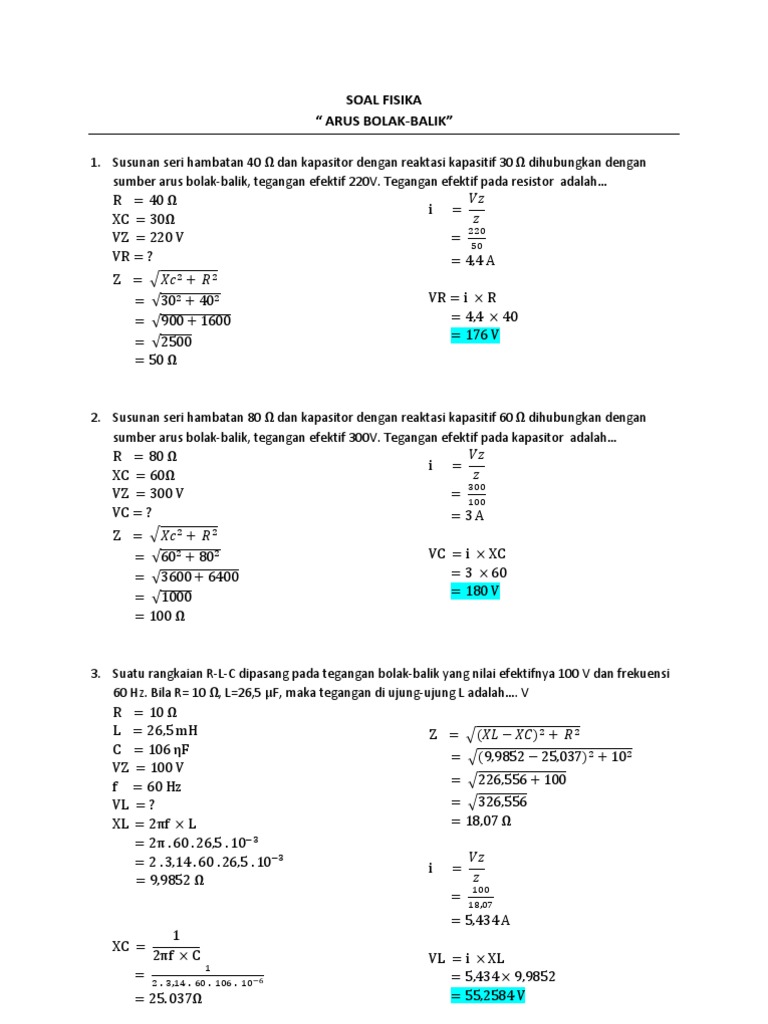 Jika anda belum Jika anda belum Home. Berikut ini ditampilkan beberapa soal dan pembahasan materi Fisika Listrik Arus Bolak-Balik AC yang dibahas di kelas 12 SMA. Susunan seri hambatan 80Ω dan kapasitor dengan reaktasi kapasitif 60Ω dihubungkan dengan sumber arus bolak-balik tegangan efektif 300V.