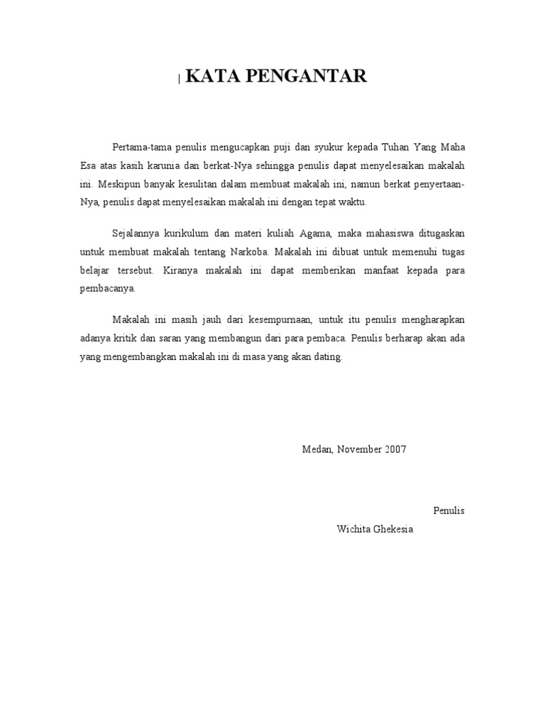 Kata pengantar karya ilmiah narkoba. Penulisan karya tulis ilmiah ini dimaksudkan untuk memberikan informasi kepada pembaca tentang narkoba dan bahayanya bagi generasi muda. BAHAYA NARKOBA BAGI REMAJA Tugas untuk memenuhi tugas Karya Tulis Ilmiah Bahasa Indonesia Disusun oleh. Semoga Karya ilmiah ini dapat dipergunakan sebagai salah satu acuan petunjuk maupun.