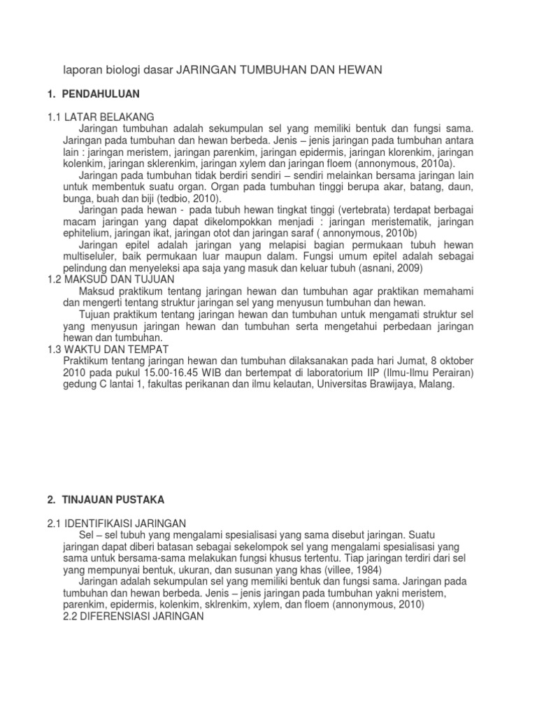 Seperti pada tumbuhan sel-sel hewan memiliki struktur dan fungsi yang sama akan membentuk suatu jaringan. Makalah ini akan membahas tentang macam jaringan yang terdapat pada tumbuhan dan hewan. View HG 3_Makalah Jaringan Tumbuhan dan Hewanpdf from CHEMICAL E q234567890 at Universitas Indonesia.