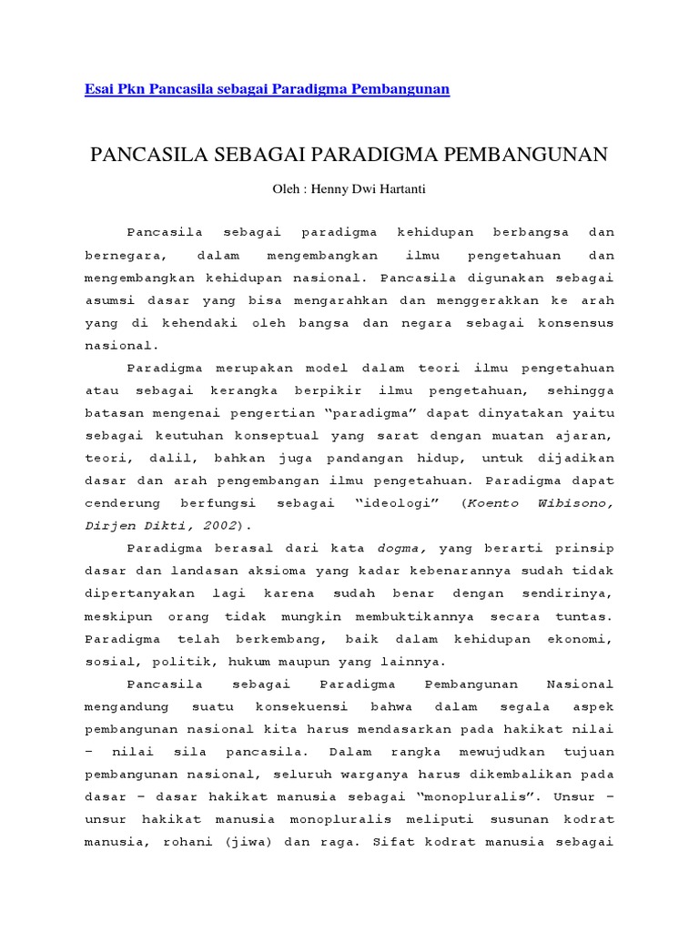 Esai Pkn Pancasila Sebagai Paradigma Pembangunan