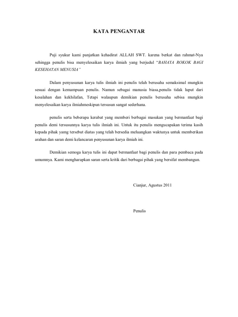 Contoh kata pengantar karya ilmiah tentang kesehatan. Kami juga mengajak Anda mencermati karya ilmiah lainnya yaitu makalah tentang pendidikan. Uji Kualitas Perangkat Lunak. Contoh karya ilmiah tentang kesehatan.