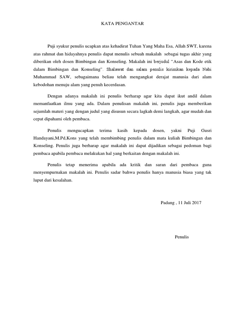 Contoh Kata Pengantar Makalah Biologi. Diajukan untuk memenuhi tugas kelompok dalam mata kuliah Bimbingan dan Konseling. UNIVERSITAS NEGERI PADANG 2017.