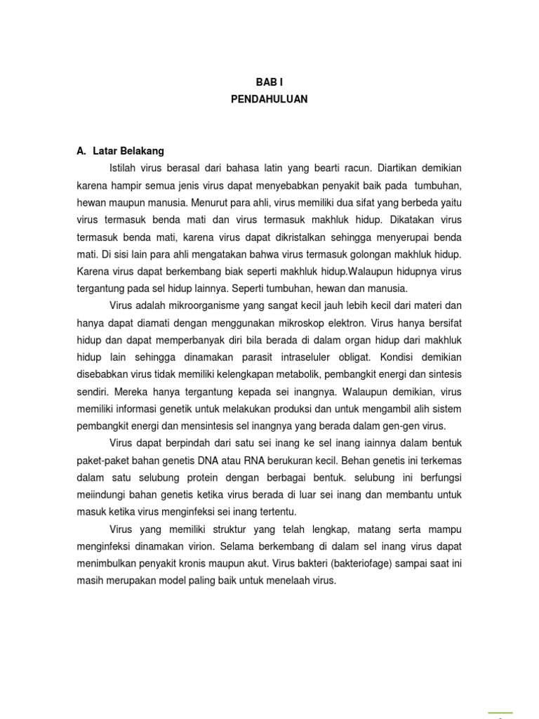 LEONY CLAUDY CORNELIS G 701 16 047 JURUSAN FARMASI FAKULTAS MATEMATIKA DAN ILMU PENGETAHUAN ALAM UNIVERSITAS TADULAKO PALU 2018 f KATA PENGANTAR Puji dan syukur kita ucapkan kepada Tuhan Yang Maha Esa atas berkat d a n r a h m a t - N ya y a n g m e m b e. Puji dan syukur kami ucapkan kepada Allah yang maha kuasa karena berkat Karunia-Nya kami dapat menyelesaikan tugas makalah tentang virus yang di berikan kepada dosen kami Nila Oktaviani MSi. Contoh Makalah Virus ini bisa didownload dalam format document atau docx yaitu format file yang bisa diedit dengan menggunakan aplikasi pengolah kata atau software word processor yang biasa digunakan di komputer atau laptop anda untuk mengetik yaitu seperti Microsoft Office Open Office atau pun software word processor lain misalnya untuk Android seperti Polaris Office Microsoft Office.