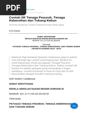 Contoh Sk Tenaga Pesuruh Tenaga Kebersihan Dan Tukang Kebun