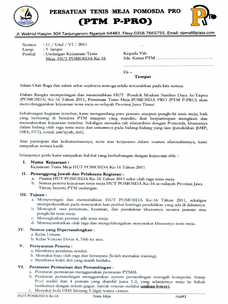 Tenis meja memiliki manfaat selain dapat membetuk jiwa kompetisi dan sprotivitas ternyata sesuai dengan penelitian merupakan salah satu sarana yang dapat digunakan untuk menguatkan kerja otak kita. Permohonan Pencairan Bantuan Sarana Olah Raga Tenis Meja Kepada Yth Bapak Walikota Tasikmalaya di Tasikmalaya Dengan Hormat Teriring salam sejahtera untuk Bapak dan semoga Bapak Walikota senantiasa dalam sehat walafiyat dan diberi kelancaran dalam menjalankan tugas pemerintahan dan tugas kemasyarakatan. Contoh proposal yang baik dan benar sunday 15 february 2015.
