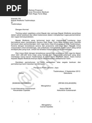 Download Full PDF Package. Bapak Walikota yang terhormat kami. Contoh proposal pengajuan tenis meja.