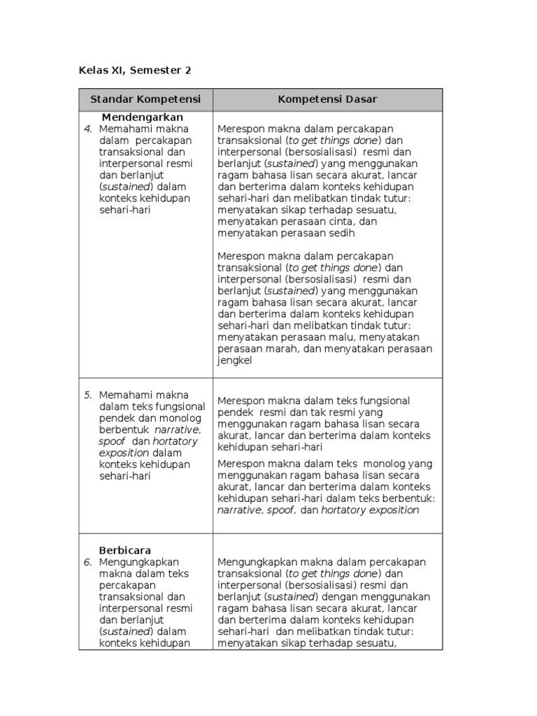 Sk Dan Kd B Inggris Kelas Xi Sem Ii