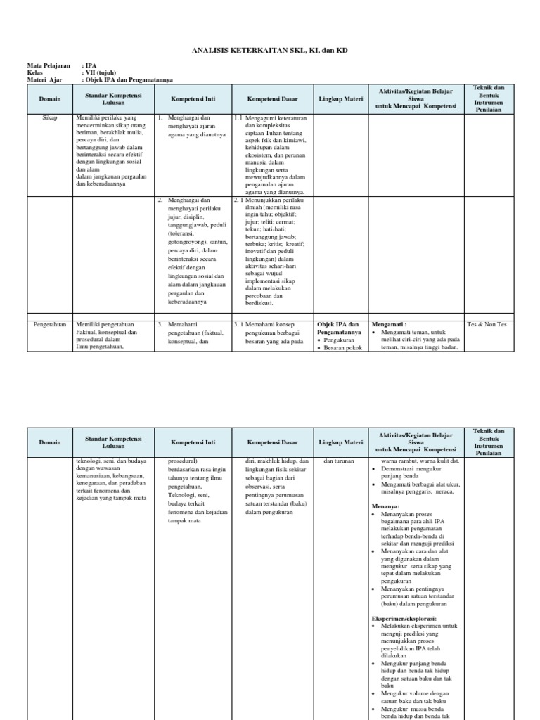 Analisis Keterkaitan Skl Ki Kd Ipa Vii Docx Yl4wyj4nd7qr