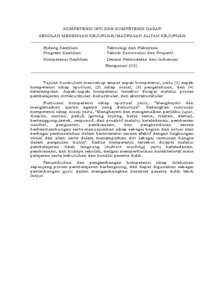 KI KD SMK MAK Kompetensi Keahlian Desain Permodelan dan Informasi Bangunan DPIB Terbaru Download Kompetensi Inti KI dan Kompetensi Dasar KD Sekolah Menengah Kejuruan SMK dan Madrasah Aliyah Kejuruan MAK Terbaru Format PDF dan Word DOCDOCX yang berisi tentang Muatan Peminatan Kejuruan C1 C2 dan C3 Kompetensi Keahlian Atau Jurusan Desain Permodelan dan Informasi Bangunan DPIB. 11 Program Keahlian Teknologi Konstruksi dan Properti. 1464D33KP2014 tentang Mata Pelajaran KD Kelompom Dasar Program Keahlian C2 dan Paket Keahlian C3 SMK MAK dinyatakan tidak berlalu utk.