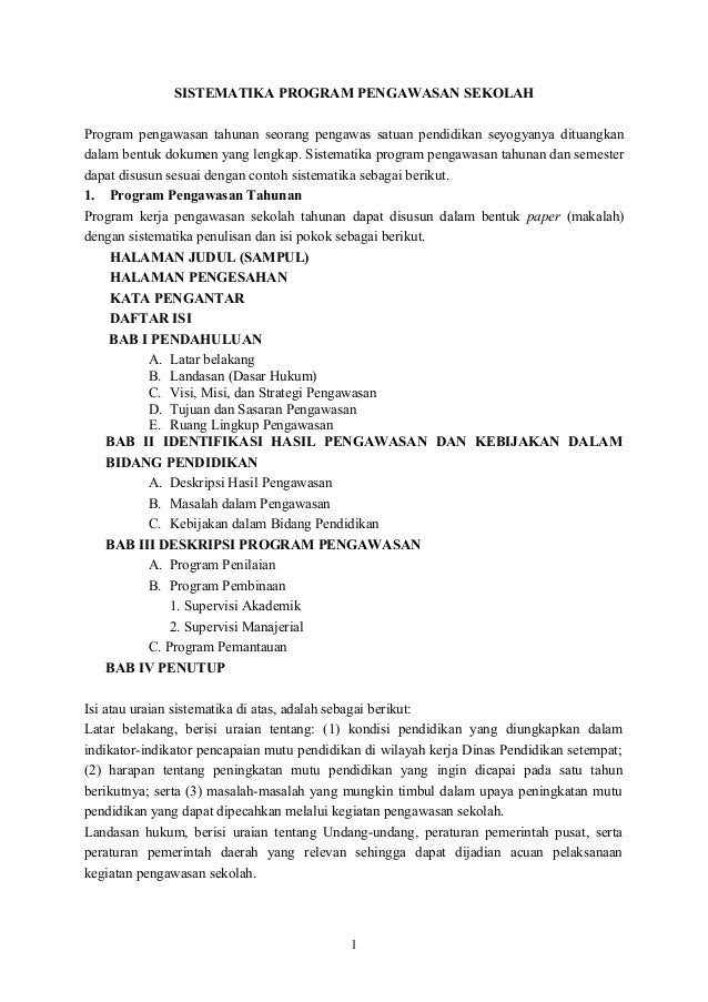 Sistematika program pengawasan tahunan dan semesterdapat disusun sesuai dengan contoh sistematika sebagai berikut1. Uraian tugas pengawas dijelaskan pada pasal 4 Permen No 39 tahun 2009 di atas merupakan tugas utama pengawas sekolah yaitu melaksanakan pembinaan di wilayah binaan melaksanakan monitoring di wilayah binaan menilai kinerja kepala sekolah guru dan karyawan sekolah di wilayah binaan dan melaporkan hasil-hasil pembinaan monitoring dan penilaian hasil pembinaan setiap bulan serta. Cara Menyusun Laporan Hasil Penelitian.