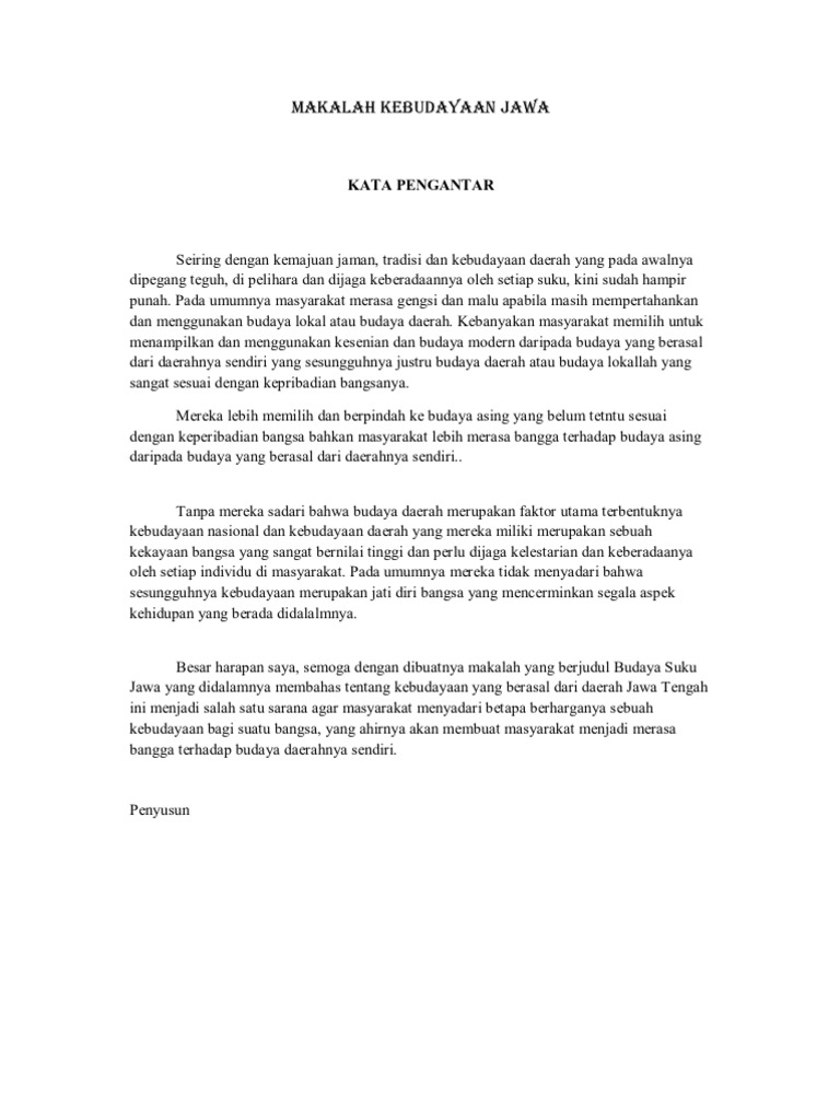 Contoh Kata Pengantar Makalah. Nuwun puji syukur kanjuk ngarsa Dalem Gusti Ingkang Akarya Bawana saisinipun ingkang sampun paring rahmat saha berkah kamirahan dumateng umatipun saengga panyerat saestu saged mujudaken Kliping Kasustran Jawi. Contoh kata pengantar makalah dalam bahasa jawa KATA PENGANTAR Khanti ngucap syukur ing ngarsaning Gusti Allah SWT penyusun saged ngrampungake tugas punika khanti mboten halangan satunggalipun.