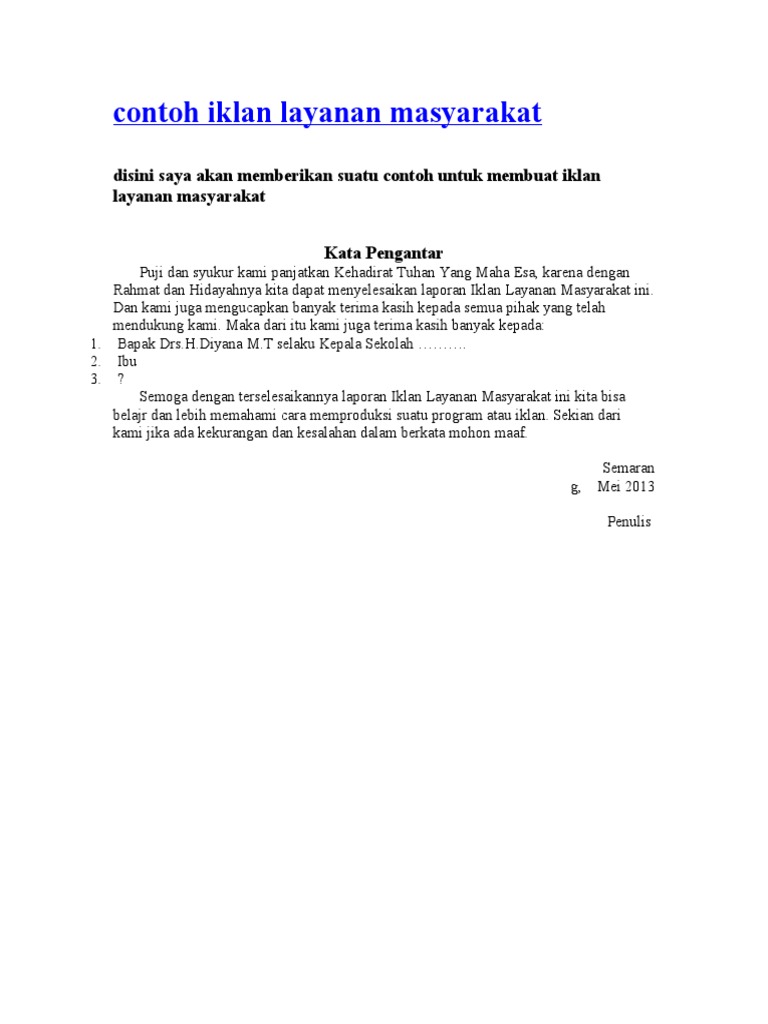 Contoh proposal iklan layanan masyarakat hemat air bersih contoh proposal iklan layanan masyarakat hemat air hemat contoh proposal iklan l. Contoh kata pengantar proposal iklan layanan masyarakat pendidikan contoh kata pengantar proposal iklan layanan masyarakat kb contoh kata pengantar proposal makanan contoh kata pengantar makalah contoh kata pengantar skripsi contoh kata pengantar laporan contoh kata pengantar karya ilmiah contoh kata sambutan contoh kata pengantar untuk makalah contoh kata. Contoh proposal iklan layanan masyarakat tentang sampah plastik contoh proposal iklan layanan masyarakat tentang sampah masyarakat contoh.