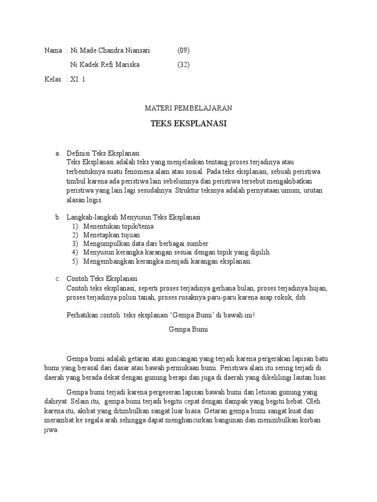 Makalah Teks Eksplanasi Doc Pdf Download Contoh Makalah Lengkap