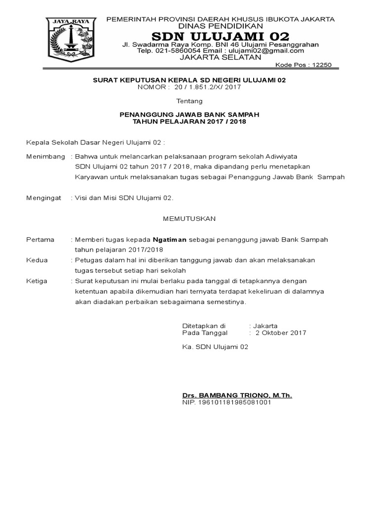 Contoh Sk Bank Sampah Guru Galeri