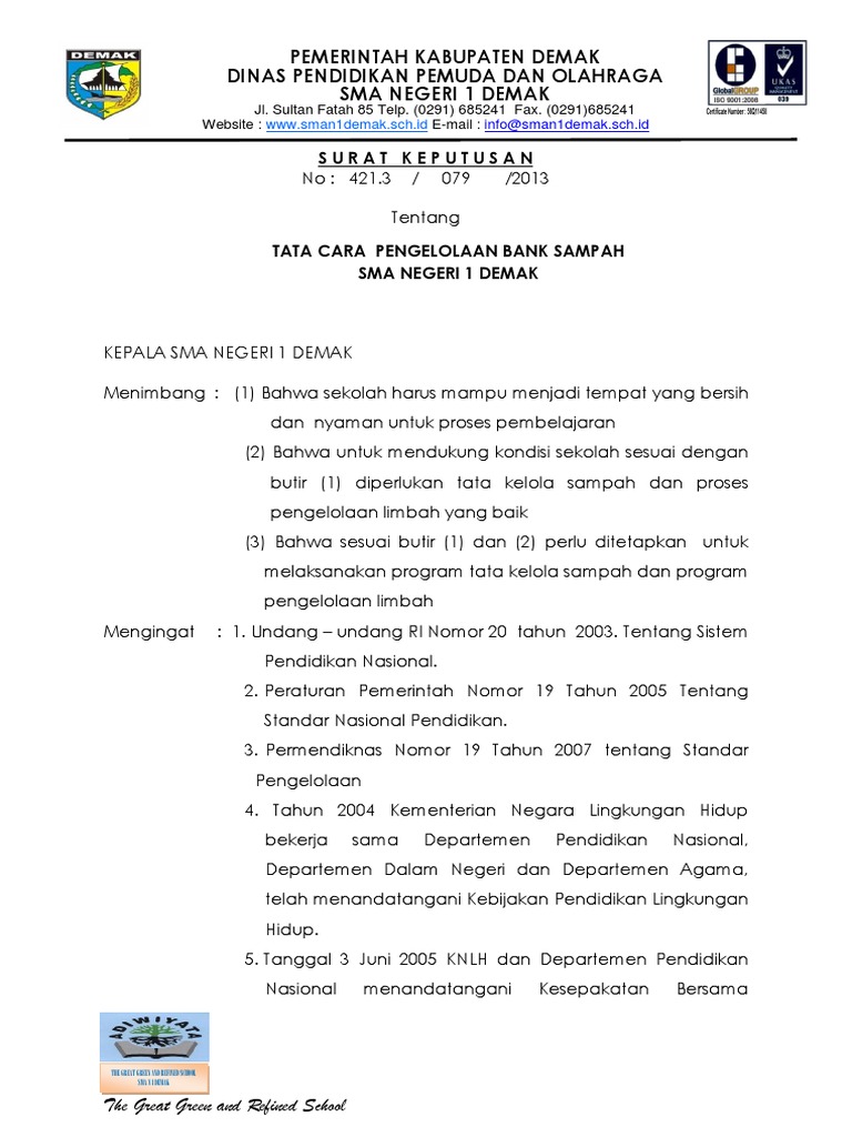 Sk Pengelolaan Bank Sampah Sma 1