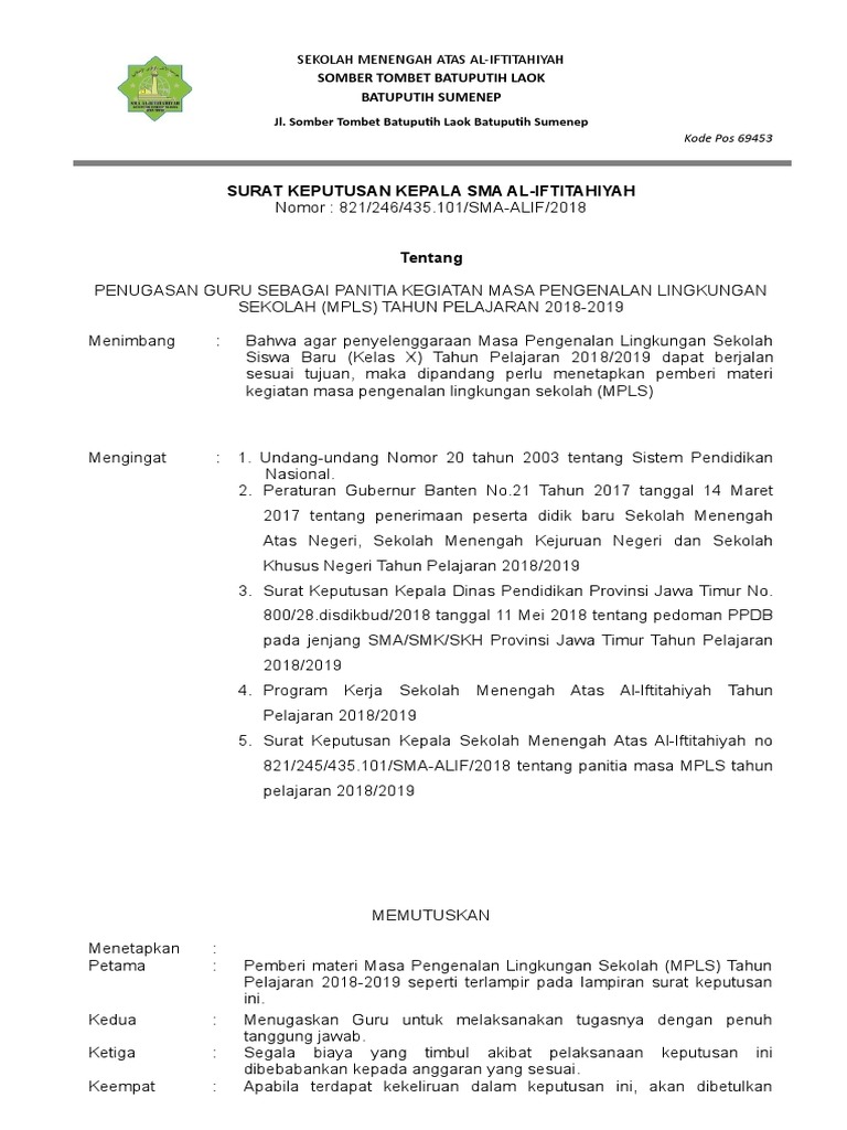Contoh sk pengenalan lingkungan sekolah. Sk Mpls Masa Pengenalan Lingkungan Sekolah 2017 2018 Contoh Sk Linmas Lembaga Adat Website Desa Umeanyar Https Core. Mengajak siswa berkeliling ke seluruh area sekolah sambil menjelaskan setiap fasilitas sarana dan prasarana yang terdapat di sekolah serta kegunaannya. Contoh format surat keputusan sk sekdes sekretaris.