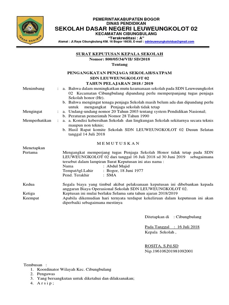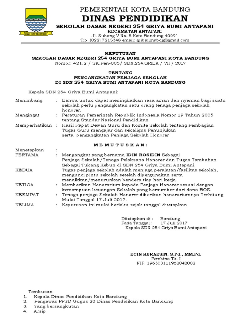 252469974 sk penjaga sekolah. Contoh sk guru honorer bos 1 123dok. Contoh di bawah ini bisa di copy dan di edit disesuaikan dengan kondisi.