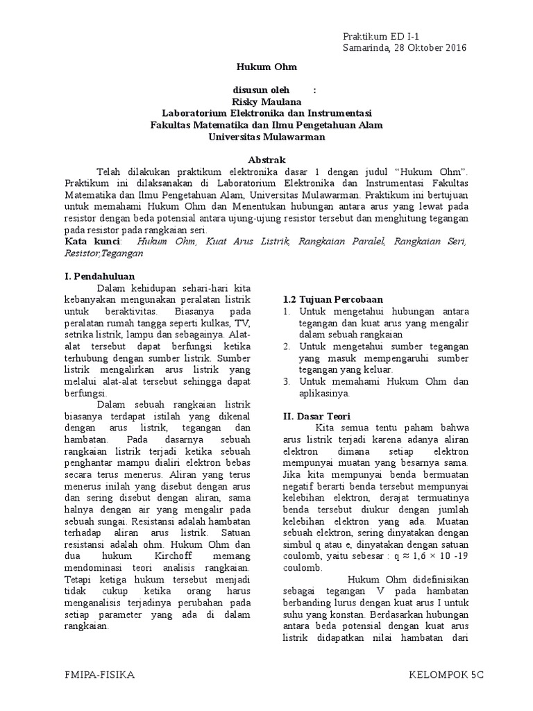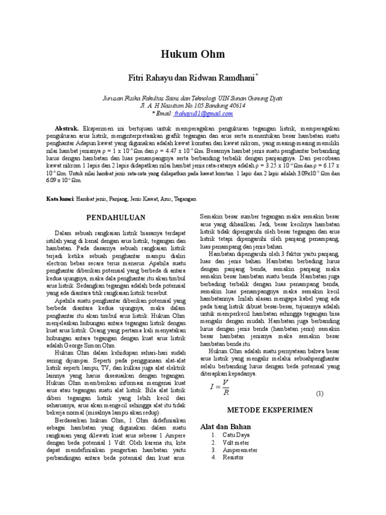 Hukum Ohm Dan Hukum Kirchoff Puji Kumala Pertiwi Academia Edu