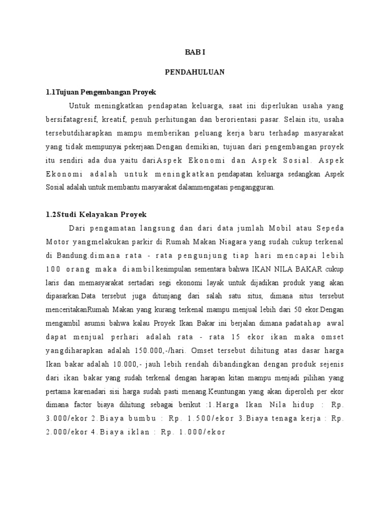 Dalam memulai usaha ikan bakar ini merupakan peluang dalam bidang makanan yang bisa memeberikan keuntungan tersendiri untuk Anda. Nakula Rt 02 Rw 08. Latar Belakang Dengan perkembangan zaman dan teknologi maka orang sekarang mulai berhati-hati dalam memilih dan membeli makanan karna pada masa kini banyak makanan yang dibuat dengan menggunakan bahan kimia yang berbahaya.