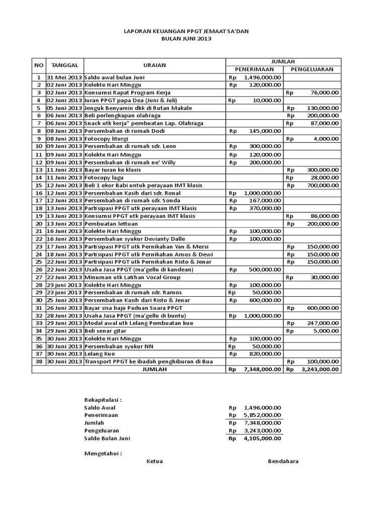 Contoh Laporan Keuangan Gereja Yang Sederhana Kumpulan Contoh Laporan