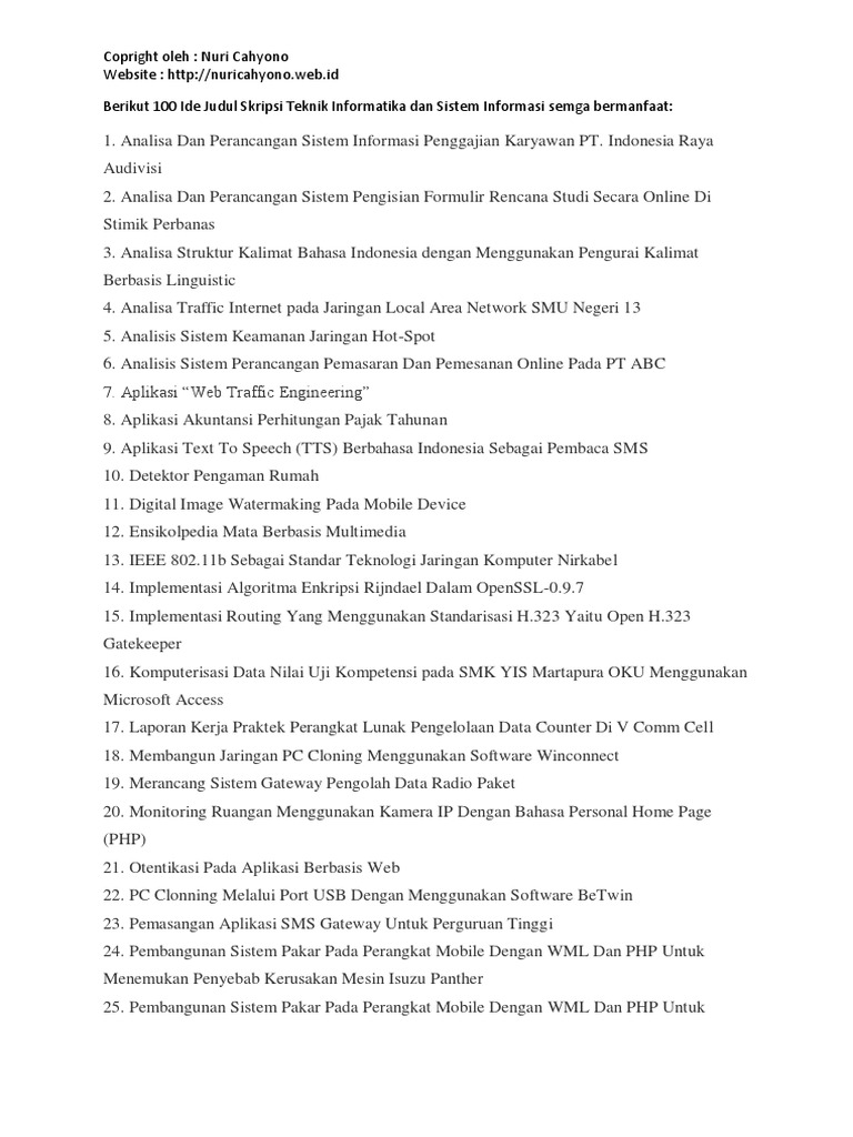 Berikut 100 Ide Judul Skripsi Teknik Informatika Dan Sistem Informasi Semga Bermanfaat