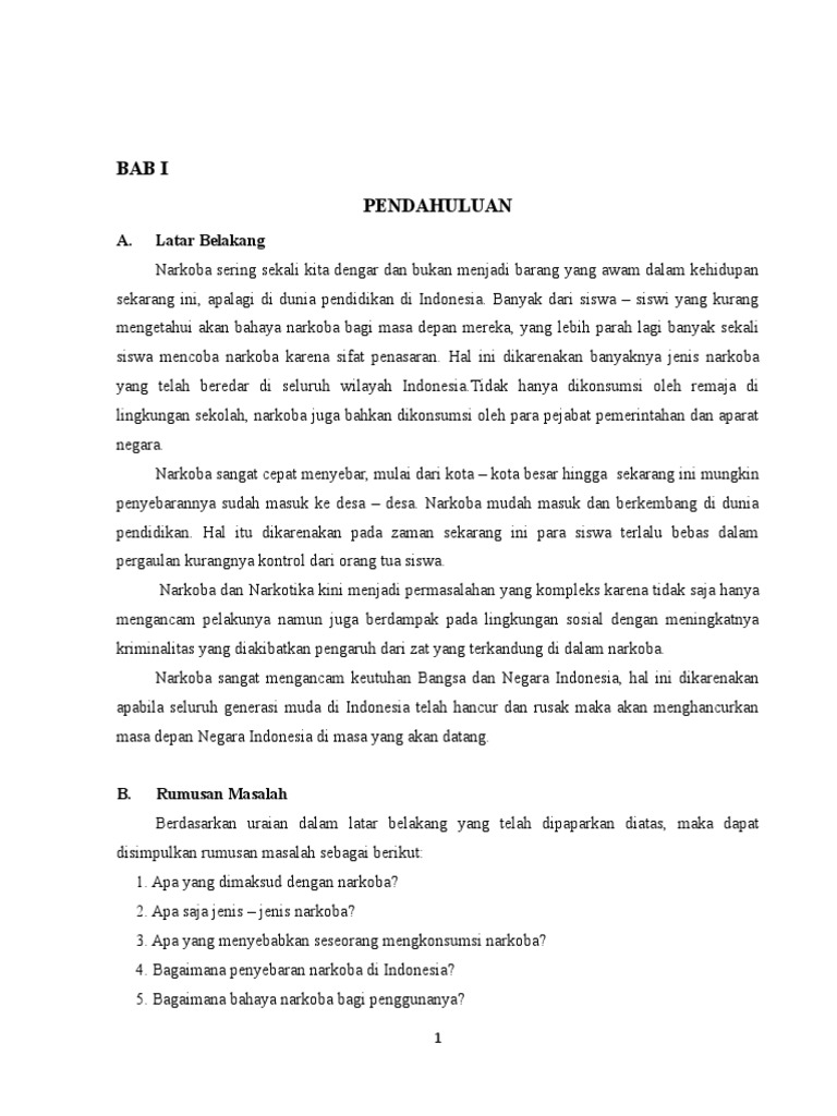 Pendahuluan dalam makalah narkoba. Pemerintah akhir-akhir ini terus mendorong masyarakat melalui berbagai. 35 tahun 2009 tentang Narkotika yaitu dengan klasifikasi sebagai berikut. 1 BAB I PENDAHULUAN A.