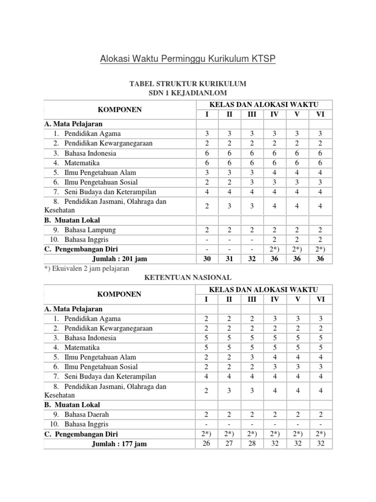Jumlah Jam Pelajaran Sd Kurikulum Ktsp Belajar Lif Co Id