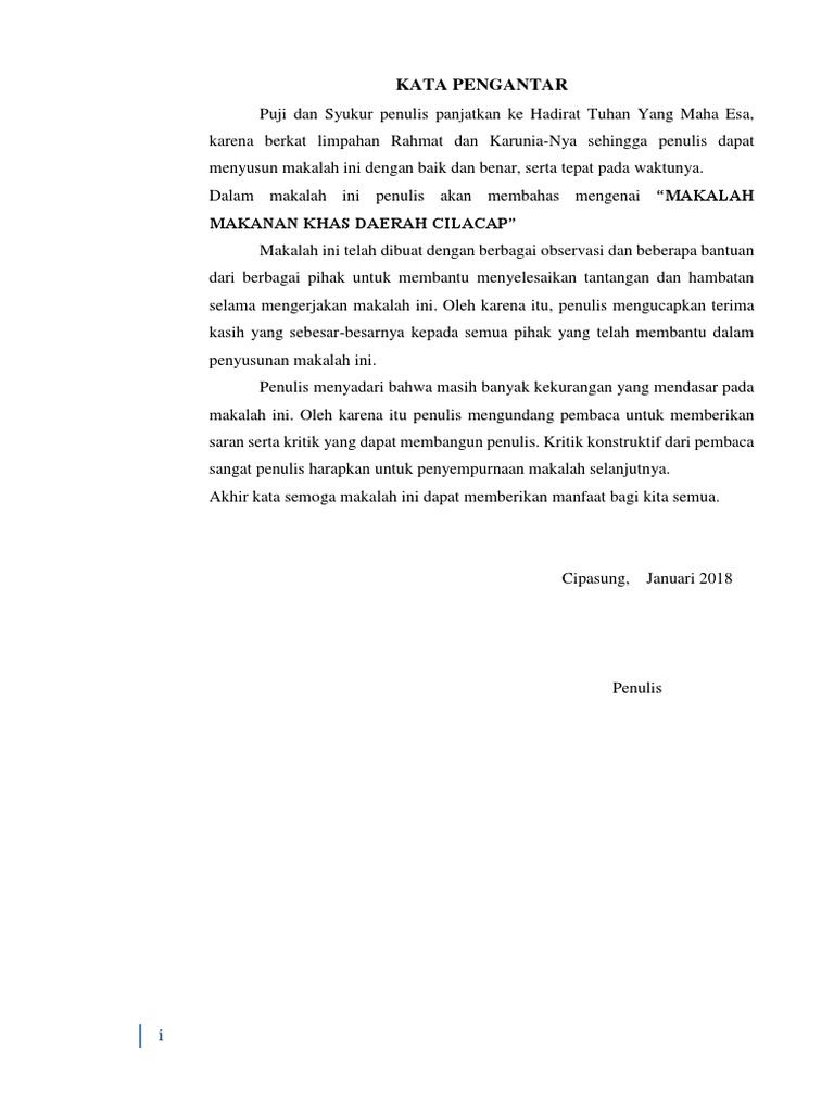 Contoh kata pengantar laporan makanan. Ucapan syukur kepada Tuhan Yang Maha Esa. Sholawat dan Salam semoga tetap terlimpah pada Nabi Muhammad SAW sehingga kami dapat menyelesaikan laporan Kegiatan Praktek Pengolahan Makanan Khas Daerah Siomay Bandung yang diberikan sekolah sebagai kelengkapan tugas prakarya dan kwirausahaan. Contoh Kata Pengantar Laporan Magang.