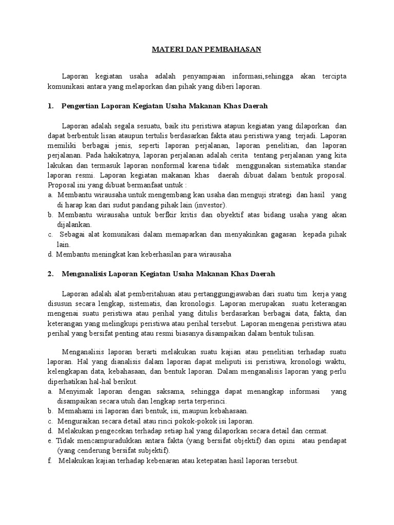 Contoh Laporan Kegiatan Usaha Makanan Khas Daerah Download File Guru