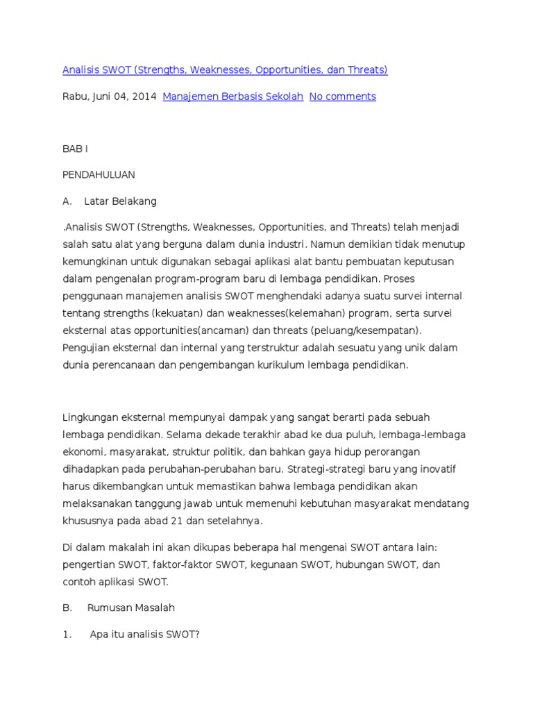 Contoh Makalah Analisis Swot Anton Nissya Academia Edu