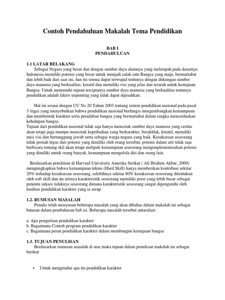 Contoh Pendahuluan Makalah Tema Pendidikan