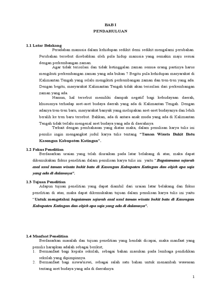 Contoh Bab I Sampai Bab Iii Karya Tulis Tentang Bukit Batu Kasongan Kalimantan Tengah