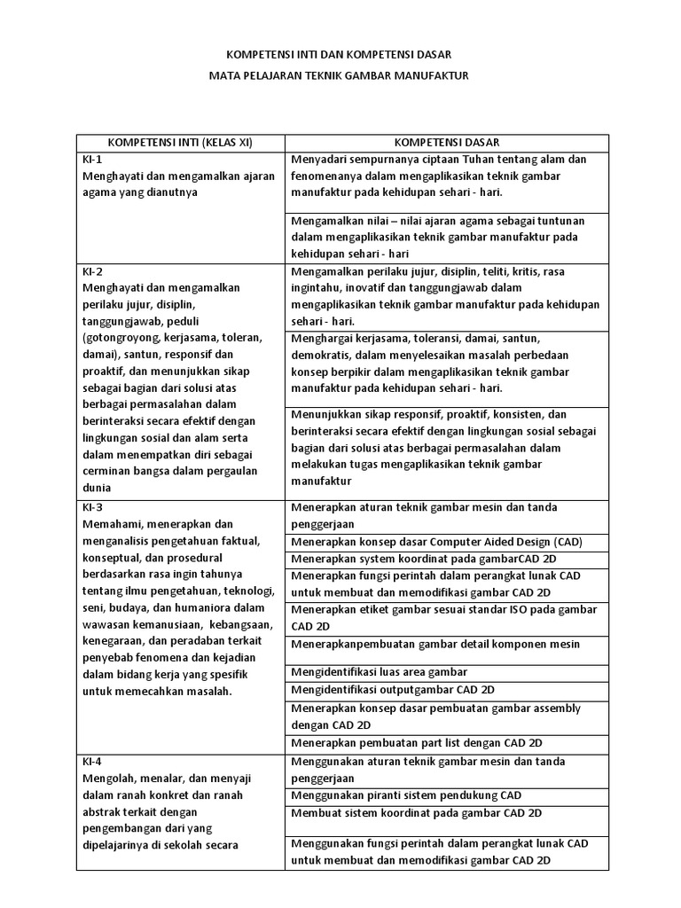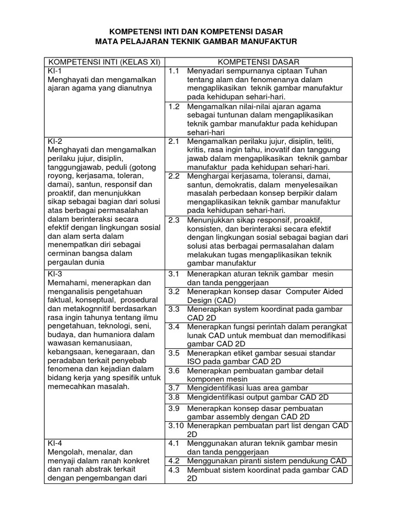 Ki Kd Gambar Teknik. Ki Kd Gambar Teknik Kelas X Tpm. Tujuan kurikulum mencakup empat kompetensi yaitu 1 kompetensi sikap spiritual 2 sikap sosial 3 pengetahuan dan 4 keterampilan.