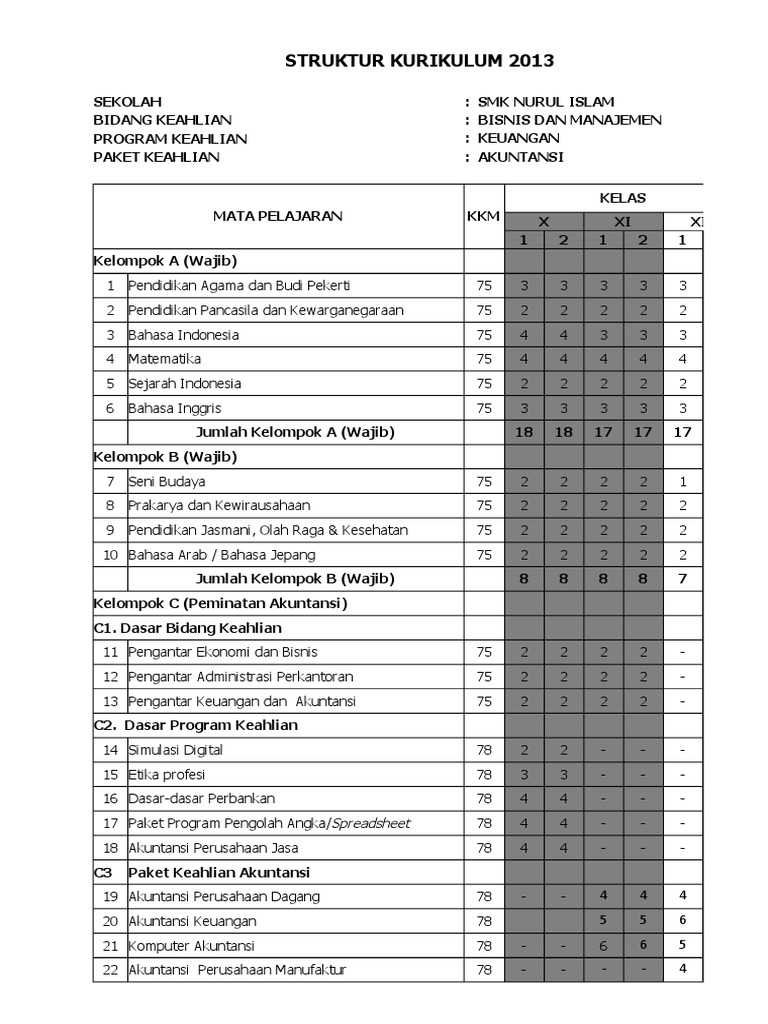 Struktur Kurikulum 2013 Smk Akuntansi Terbaru Berbagai Struktur
