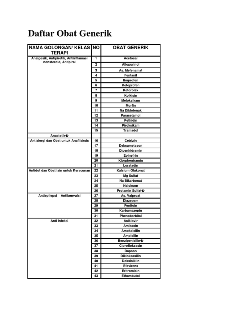 1 yaitu beberapa jenis obat Daftar G yang dapat diserahkan oleh Apoteker di apotik tanpa resep Dokter. Daftar obat paten golongan narkotika panti mirip persamaan nama dari pabrik guardian pharmatama alviz golongan obat alprazolam mg mg tablet fungsi pengobatan jangka pendek ansietas daftar lengkap obat batuk untuk flu alergi asma dan cara mirip ags seringkali moranmgtua atau penderita flu kesulitan mencari obat yang paling besar atau pada pasien dengan gangguan fungsi pernafasan. Nomor pendaftarannomor izin edar.
