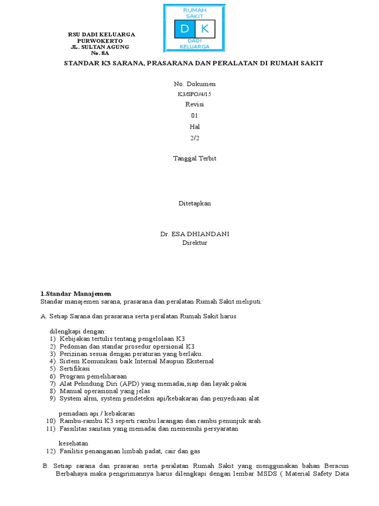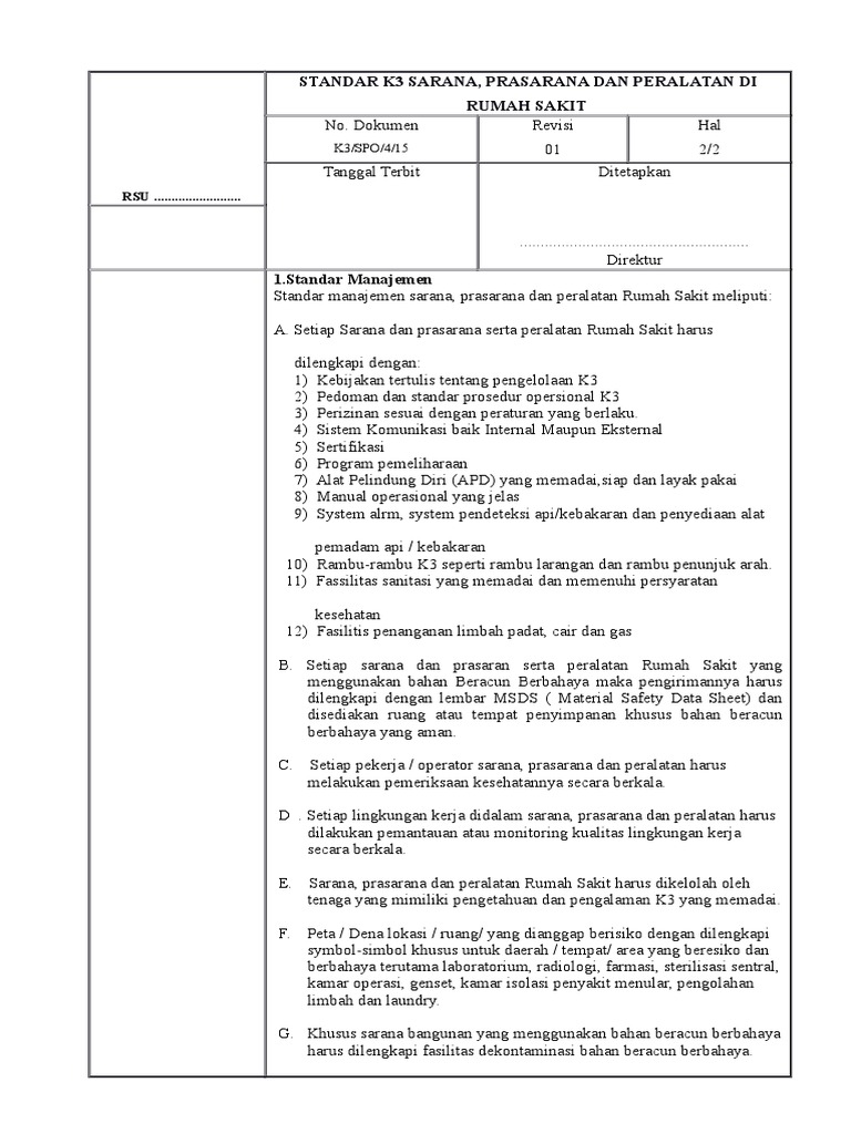 Spo Standart K3 Sarana Dan Prasarana Rumah Sakit