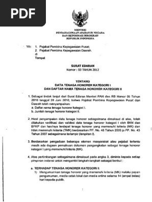 Namun mereka tetap harus mengikuti tes seleksi yang akan digelar secara nasional sebagaimana calon PNS lainnya. Uji Publik Daftar Nama Tenaga Honorer Kategori II Global Administrator 235 PM Kementerian Pendidikan dan Kebudayaan Kemdikbud RI menyampaikan pengumuman sehubungan dengan surat Kepala Badan Kepegawaian Negara Nomor K26-30V50-393 tanggal 19 Maret 2013. Sesuai surat kepala badan kepegawaian negara nomor k26 30 v50 3 93 tanggal 19 maret 2013 tentang pengumuman uji publik tenaga honorer kategori ii dengan telah ditetapkan pengumuman wakil bupati garut nomor 814 775 bkd tanggal 4 april 2013 tentang listening daftar nama tenaga honorer kategori.
