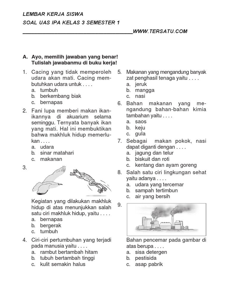 Soal Ipa Kelas 3 Sd Lingkungan Sehat Dan Tidak Sehat Guru Paud